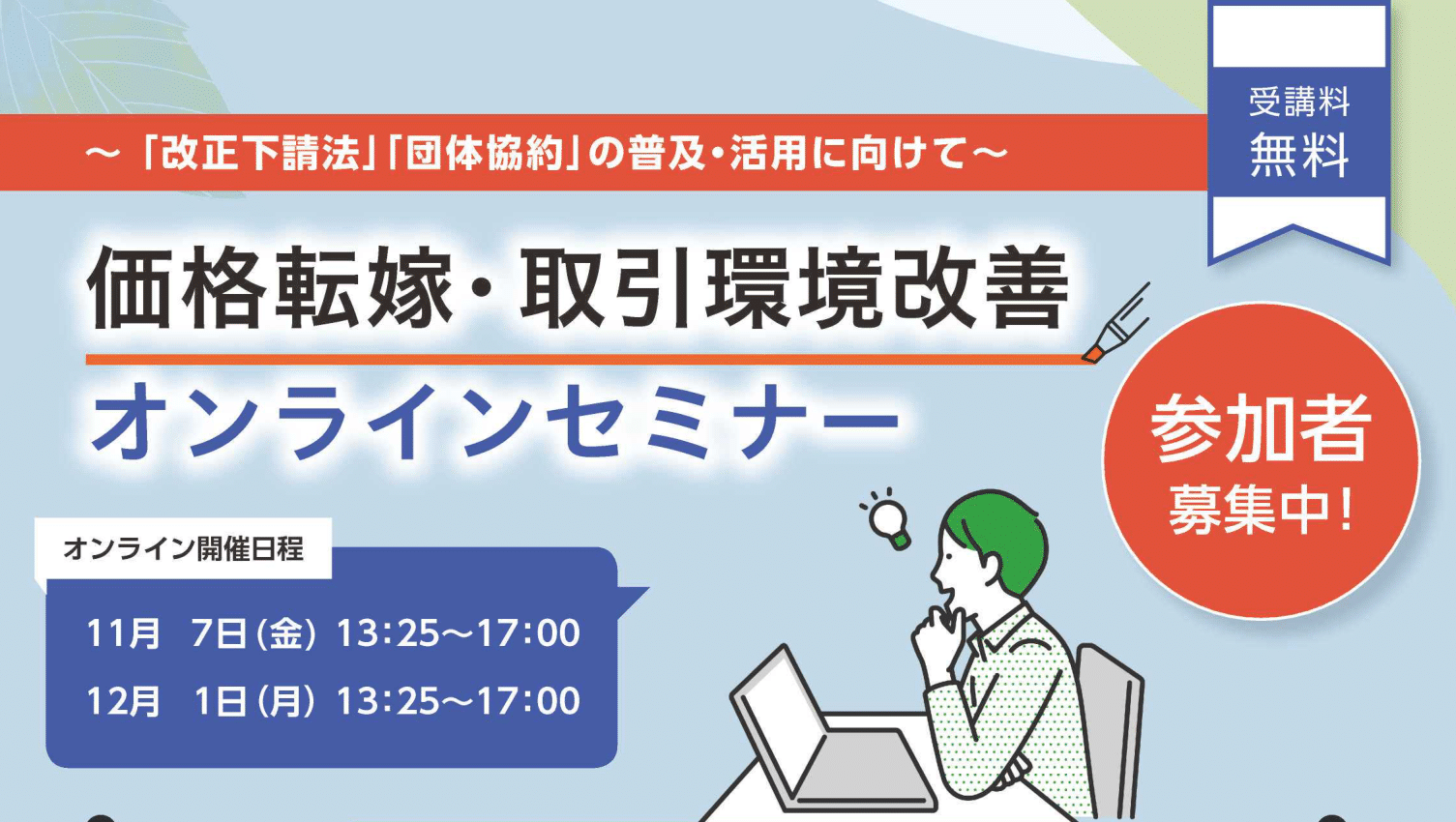 全国中小企業団体中央会「価格転嫁・取引環境改善セミナー」開催について