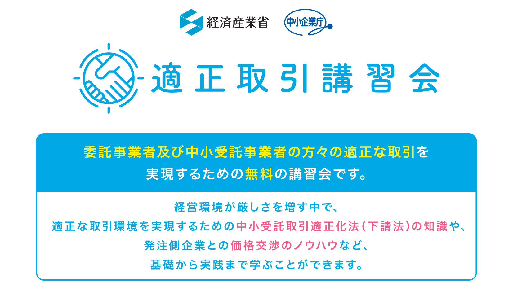 中小企業庁「適正取引講習会及び価格交渉講習会」開催について