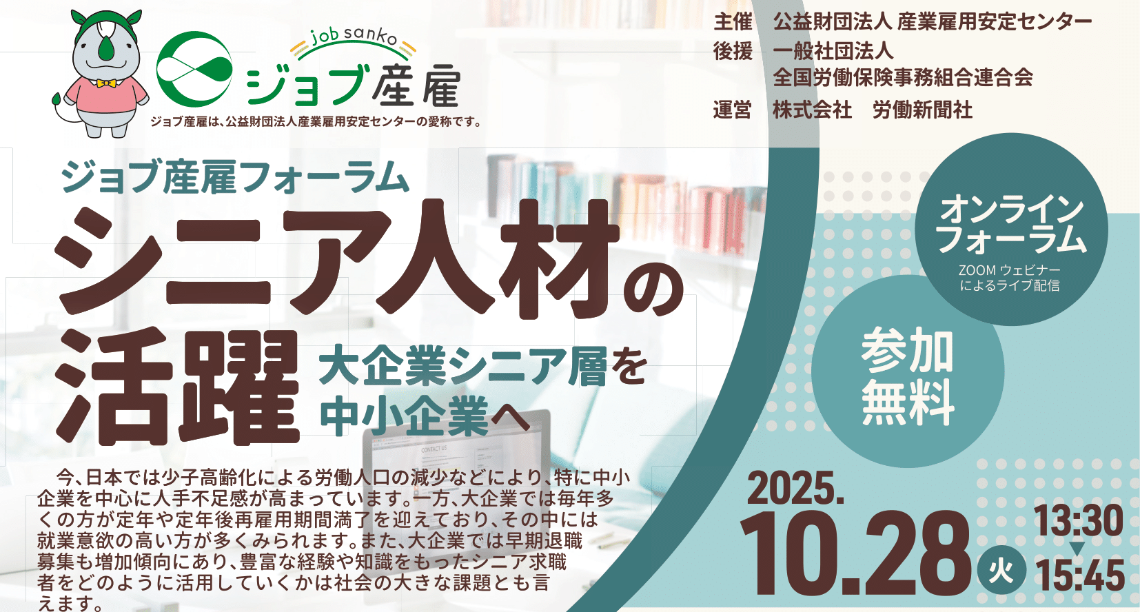 産業雇用安定センター「シニア人材の活躍 大企業シニア層を中小企業へ」フォーラム開催について