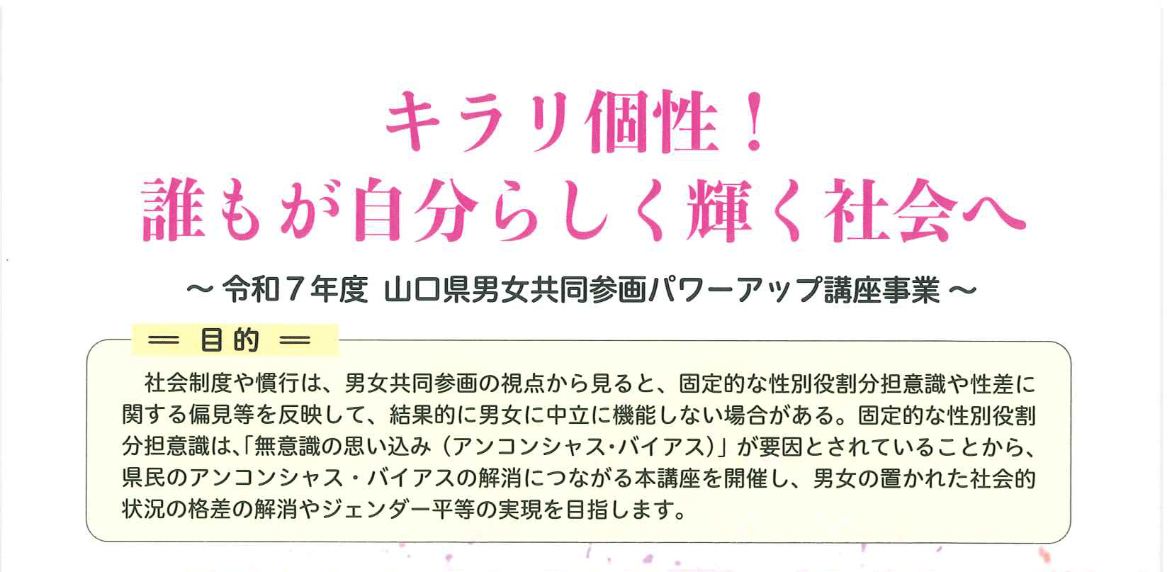 お知らせ山口県女性団体連絡協議会「山口県男女共同参画パワーアップ講座」開催について